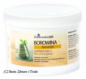 Odprężająca sól przeznaczona do kąpieli ciała. Zawiera m.in. ekstrakt z borowiny pozyskany z borowin ze złoża Uzdrowisko Kołobrzeg S.A. oraz ekstrakt z bursztynu.